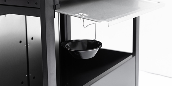 Le brûleur latéral avec couvercle a une puissance de 2,5 kW et est idéal pour la cuisson des plats d’accompagnement dans une casserole.Vous pouvez également rabattre le couvercle pour l’utiliser comme table d’appoint.